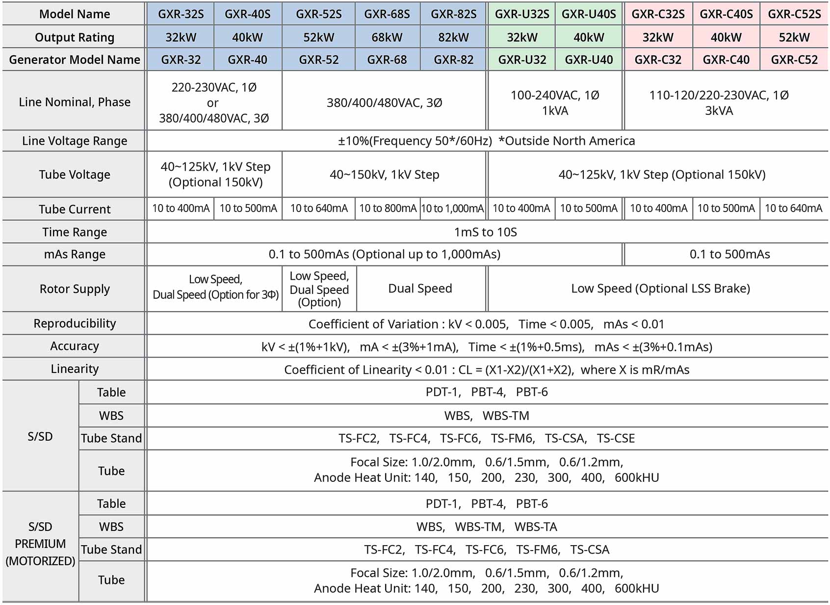 El sistema de rayos X de diagnóstico GXR se combina con una sala radiográfica que se adapta perfectamente a su flujo de trabajo. El sistema de rayos X GXR está equipado con un generador de rayos X de alta frecuencia que produce consistentemente una salida de rayos X de alta calidad, con una ondulación de kV muy pequeña y 'mA' y 'mAs' precisos. Es un sistema Radiológico de Alta frecuencia analógico, opcionalmente el mismo sistema puede ser digital, dependiendo el funcionamiento deseado por el operador.